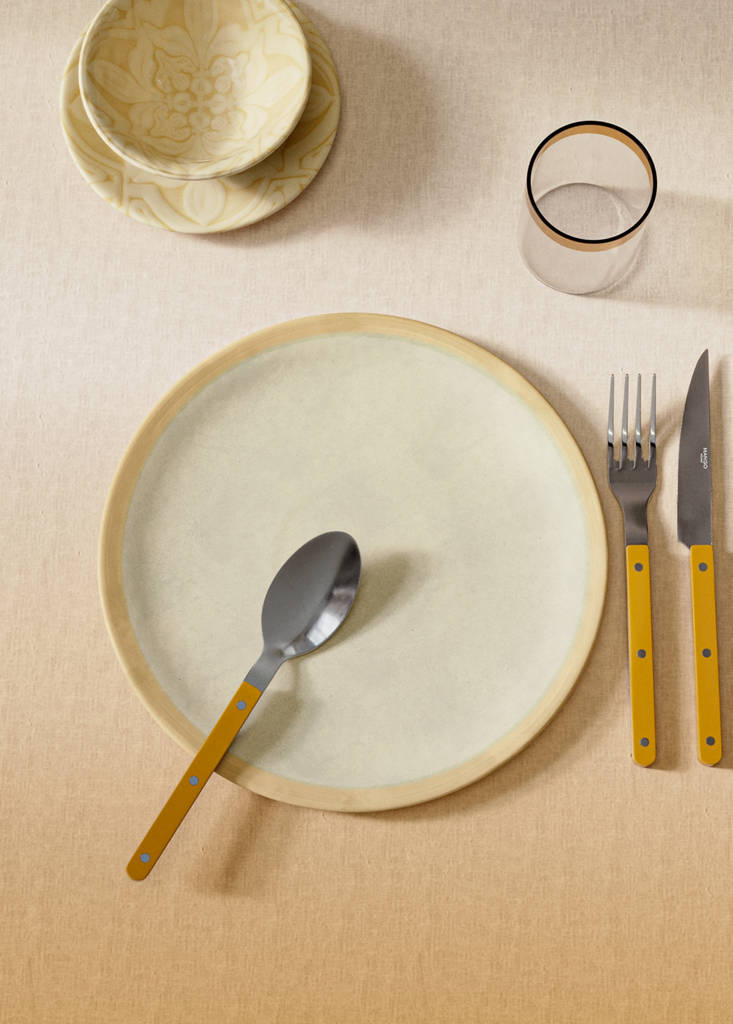 100% gres. Diámetro: 27,3 cm. Grosor: 1,7 cm. Diseño pintado a mano. Puede haber ligeras variaciones entre los diseños.. Hecho en Portugal. Ideal para dar un toque colorido a tu mesa. Disponible en tres colores