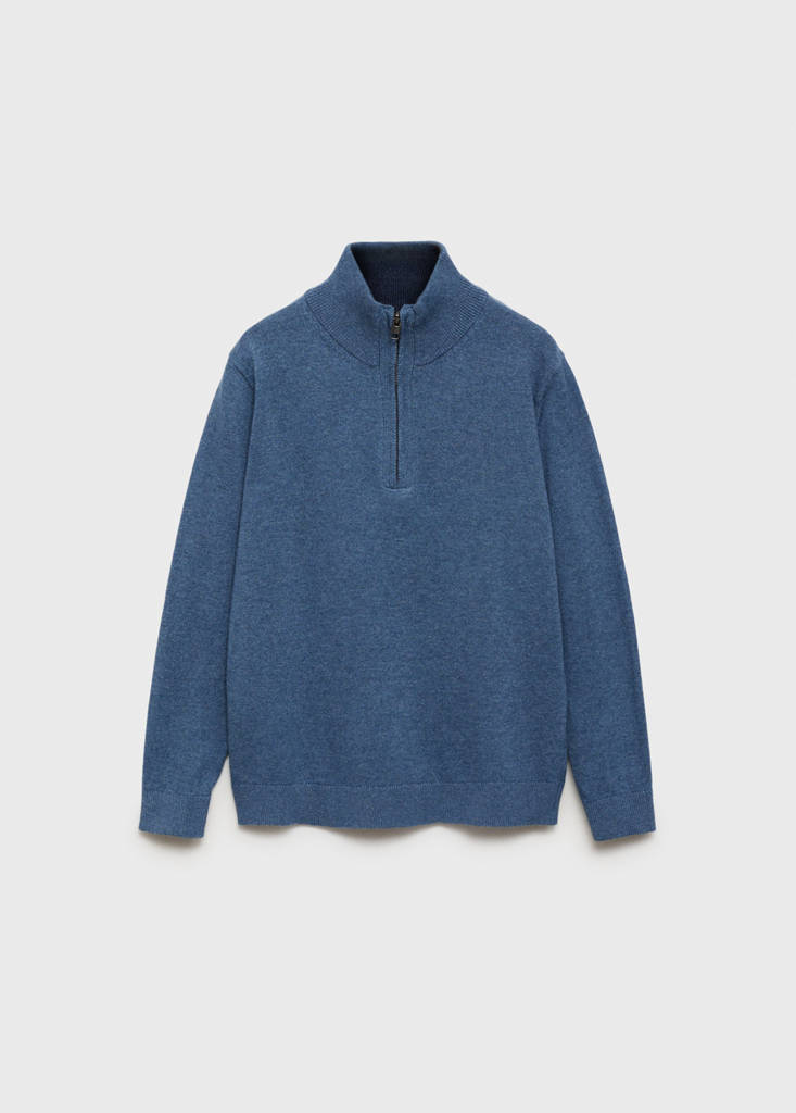 Jersey cuello cremalleraPrecio actual [19,99 € ]19,99 €Selecciona un colorAzulSelecciona tu talla5-6 años (116cm)No disponible ¡Lo quiero!7-8 años (128cm)No disponible ¡Lo quiero!9-10 años (140cm)No disponible ¡Lo quiero!11-12 años (152cm)No disponible ¡Lo quiero!13-14 años (164cm)No disponible ¡Lo quiero!MedidasAvísameAñadir a FavoritosVer lookEnvío gratis a tiendaTejido 100% algodón. Tejido de punto. Diseño recto. Cuello perkins con cremallera. Cuello en contraste. Manga larga. Cuello, puños y bajo en canaléDetalles, composición y cuidadosDisponibilidad en tiendaMango StylistPregunta por envíos, devoluciones y másAssistantCualidades del artículoAlgodón recicladoAl menos 30 %Esta fibra se obtiene a partir de restos textiles pre y post consumo que se transforman en nuevos tejidos.