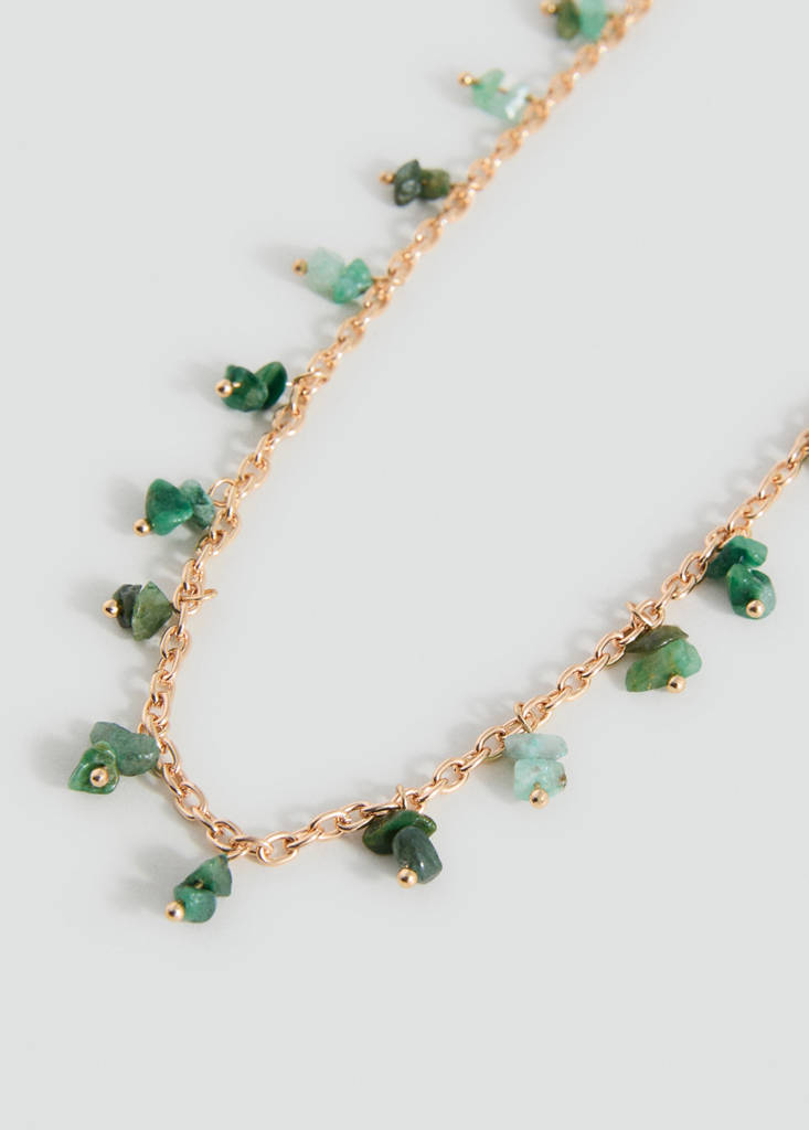 Abalorios de piedra. Cadena fina metálica. Cierre de gancho