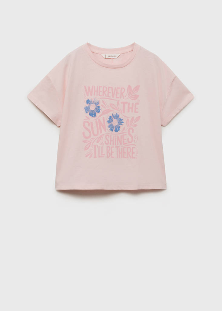 100% cotton fabric. Short design. Straight design. Floral-print design. Round neck. Short raglan sleeve. Image printed on the front. Knot detail on the bottom of the t-shirt