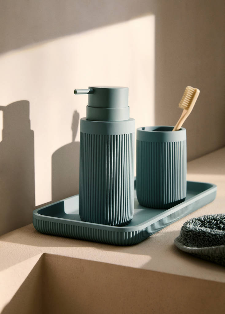 Resin soap dispenserCurrent price [€ 19,99 ]€ 19,99Select a colourBlueSelect your sizeOne sizeNot available. I want it!Notify meAdd to WishlistSee lookFree delivery to storeDispenser. 90% resin. Size: 7x17.3 cm. Creates a warm and pleasant atmosphere. Stripe detail. Coordinates with more products from the collection7.0x17.0x7.0 cm (Length x Height x Width)Details, composition and careStore availability