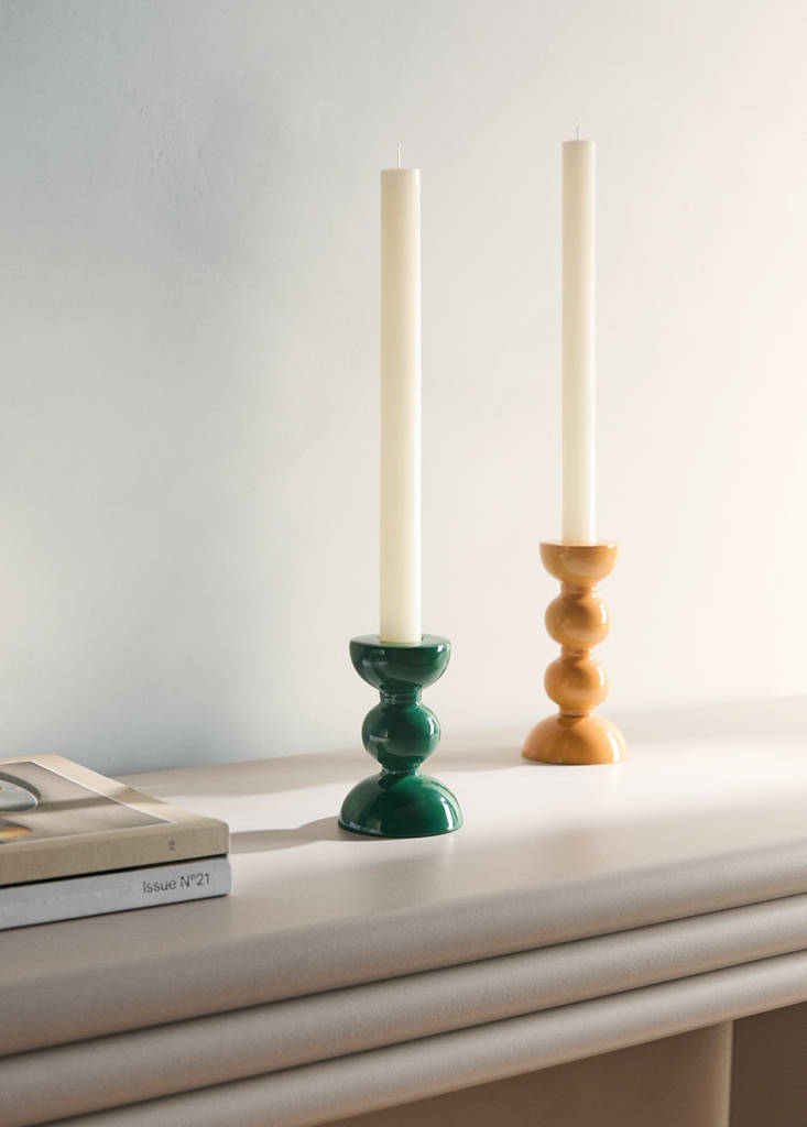 Metal low-colour candelabraCurrent price [€ 15,99 ]€ 15,99Select a colourLight/Pastel GreySelect your sizeSLSizeChoose your sizeAddAdd to your wishlistSee lookFree delivery to store100% aluminium. Height: 10 cm. Coloured aluminium candelabrum with a rounded base and glossy finish. Available in more sizes. Add a colourful touch to your spaceDetails, composition and careStore availability