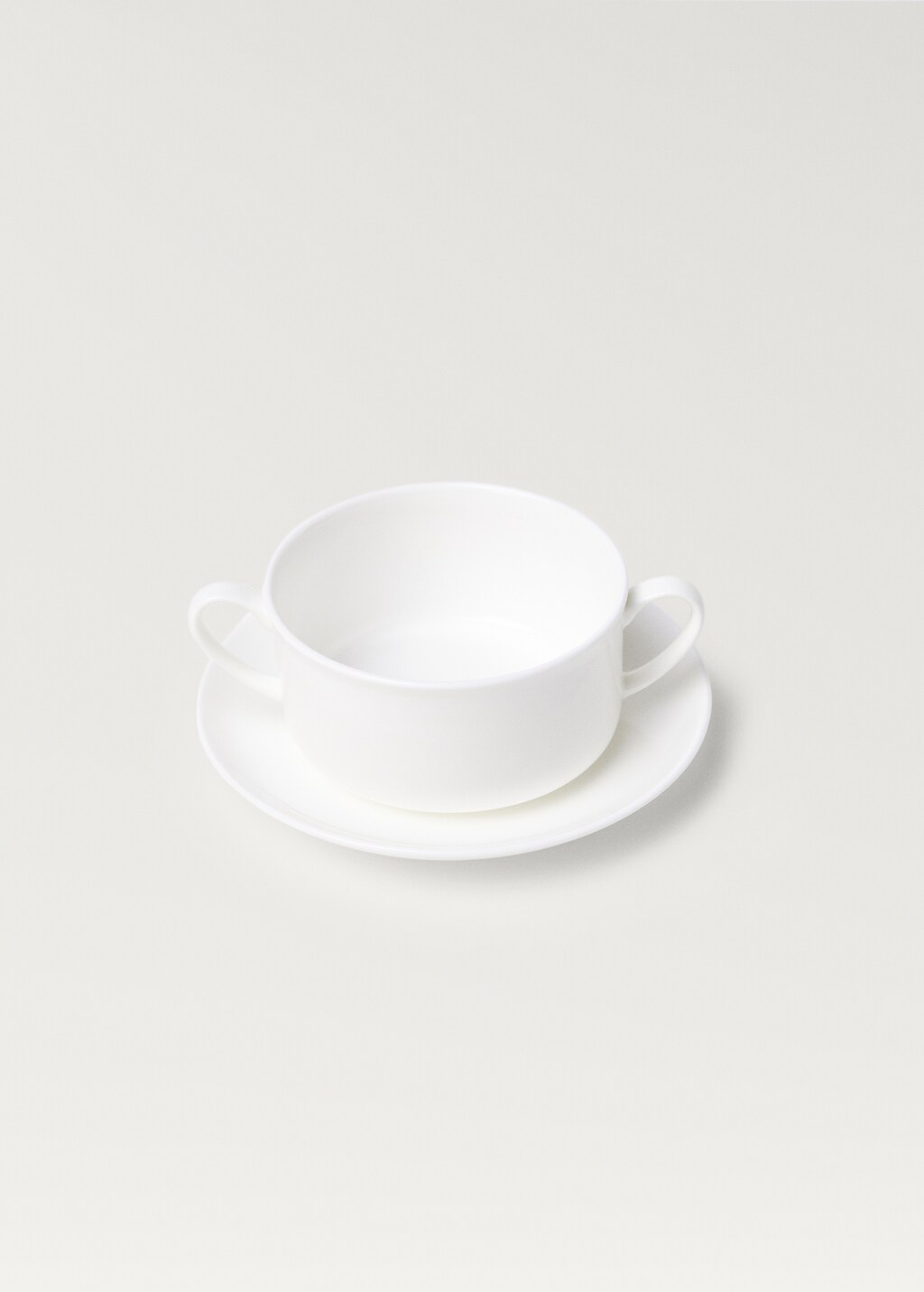 100% bone china. Mug and plate included. Cup: height 5.5 cm and diameter 11 cm. Plate: diameter: 16 cm. It may contain liquid. Suitable for food. High-quality and durable materials. Coordinates with more products from the collection. Available in two sizes. Dishwasher safe. Microwave safe