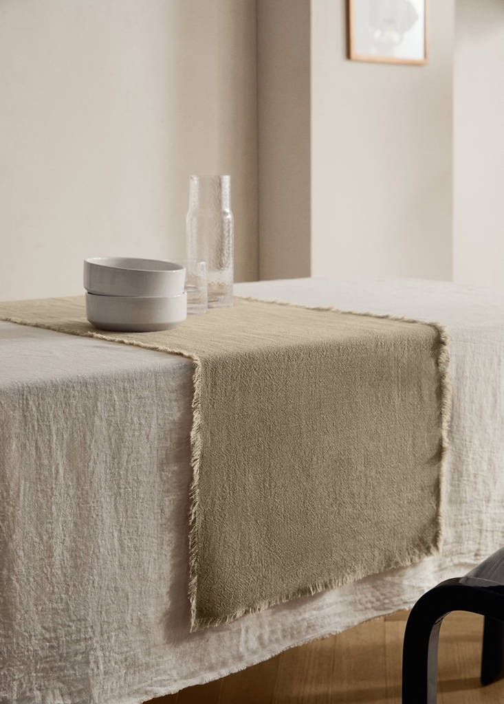 100% Linen. Size: 50x160cm. Fringed finish. Individual table runner made from 100% linen, providing a natural texture, softness, and high quality. Decorate your table with a special touch. Available in different colours