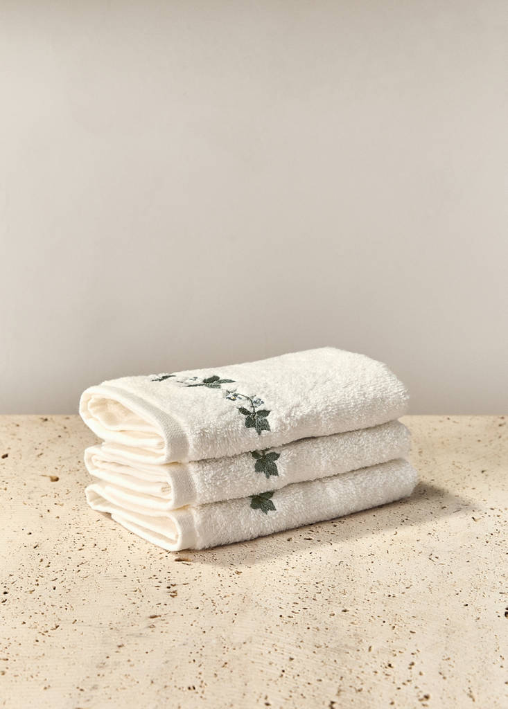100% Cotton. Pack of 3. Size: 30x30 cm. Weight: 480 g/m2. Flowered embroidery. Highly absorbent and breathable for quick drying. Coordinates with more products from the collection. Available in different colours