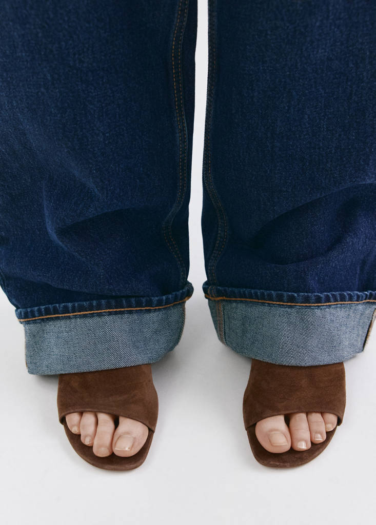 100% goat leather. Suede. Strip design. Slingback design. Open toe. Kitten heel. Heel height: 5.5 cm