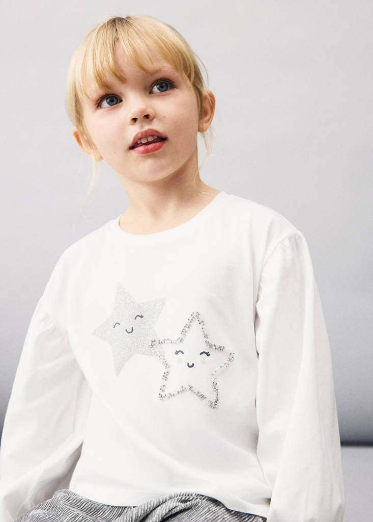 Confectionnée en tissu 100 % coton, cette pièce présente une coupe droite avec une broderie et un imprimé étoiles. Col rond, manches longues et poignets élastiques. Elle fait partie de la collection fêtes et événements et de la collection Noël
