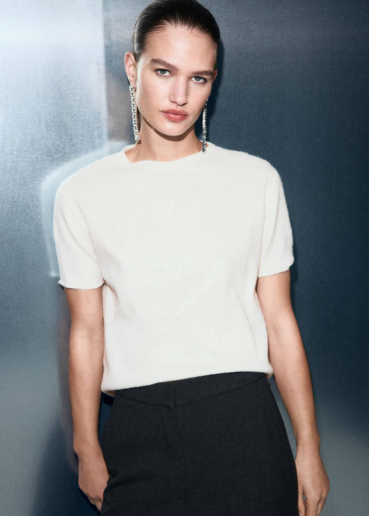 Tissu en maille fine. Tissu à sequins. Coupe droite. Col rond. Manches courtes. Disponible en grande taille. Ce vêtement appartient à notre collection fêtes et événements qui est conçue pour sublimer votre look lors d'occasions spéciales