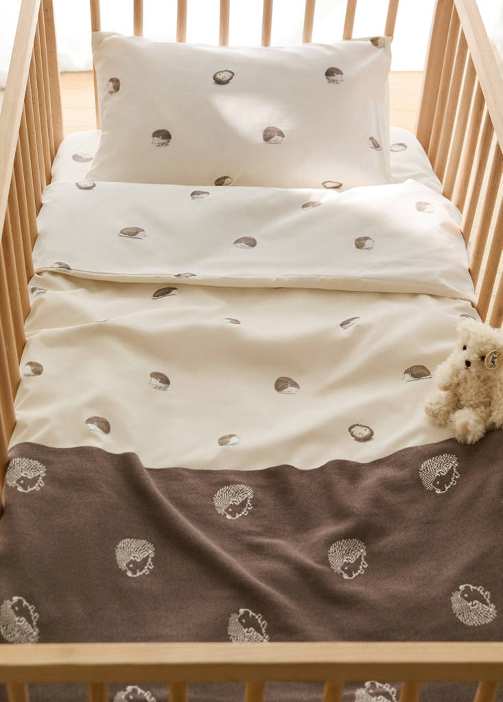 Housse de couette berceau percale de coton imprimé hérissons