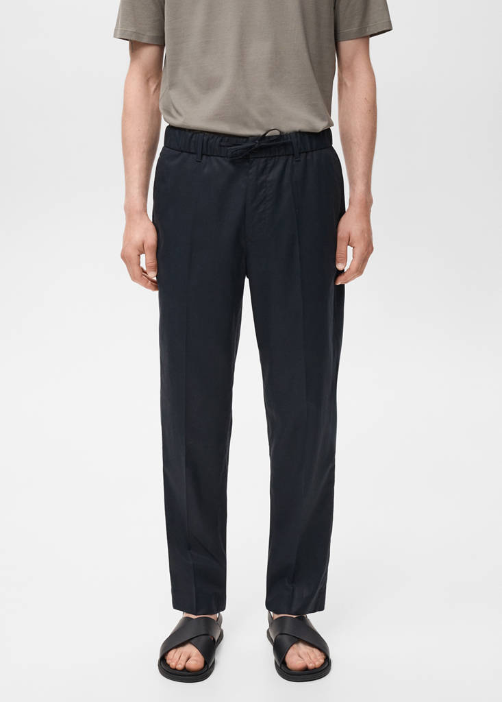 La couleur bleue est une exclusivité en ligne. Coupe jogging. Tissu en mélange de coton et lyocell. Le tissu Lyocell offre un grand confort et une grande fluidité. Tissu Tencel™ très résistant, doux pour la peau et doté d’une absorption efficace de l’humidité. Taille élastique avec cordon. Deux poches latérales. Poche passepoilée à l'arrière. Bas élastiqué