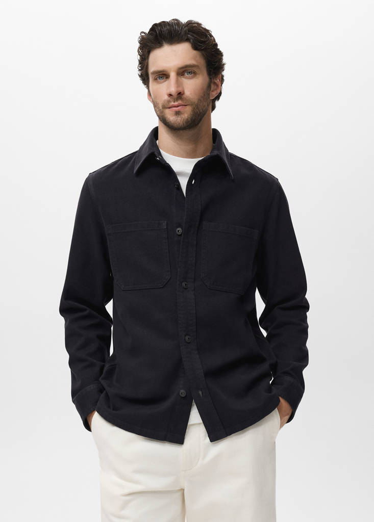 Tissu 100 % coton. Coupe droite. Col chemise. Deux poches plaquées sur le devant. Fermeture avant à boutons métalliques. Manches longues boutonnées