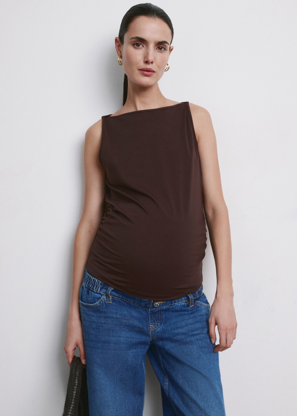 Coupe ajustée. Détails froncés. Col rond. Sans manches. Bretelles larges. Grossesse. Exclusivité en ligne.