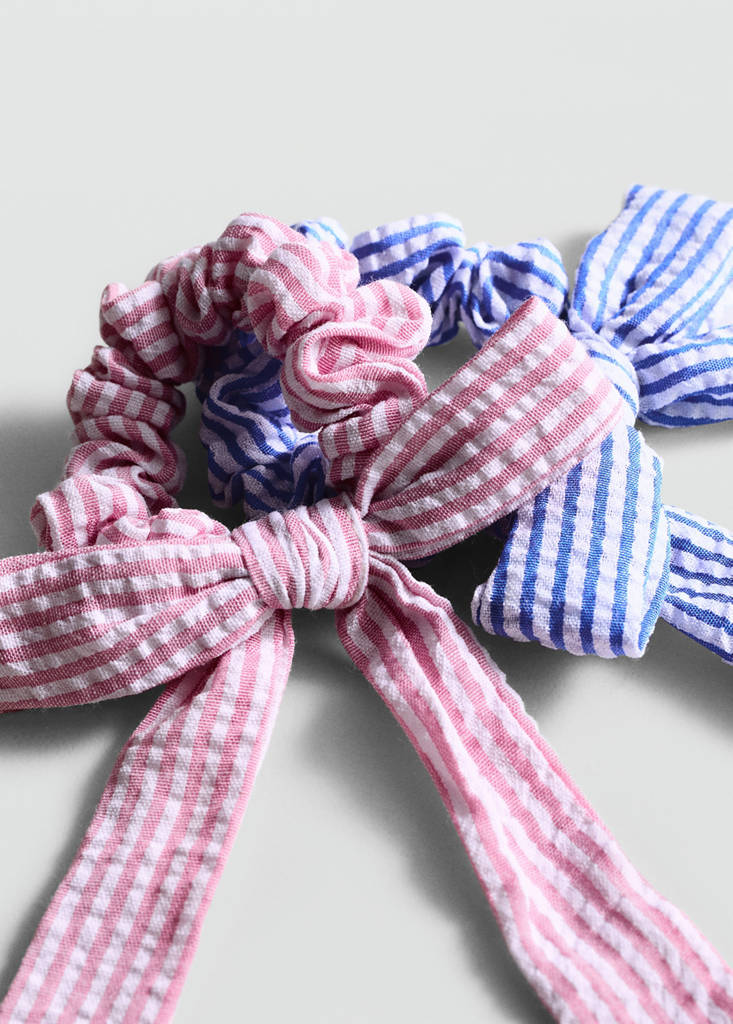 Tissu en coton. Pack de 2. Motif à rayures. Nœud décoratif. Finition élastique
