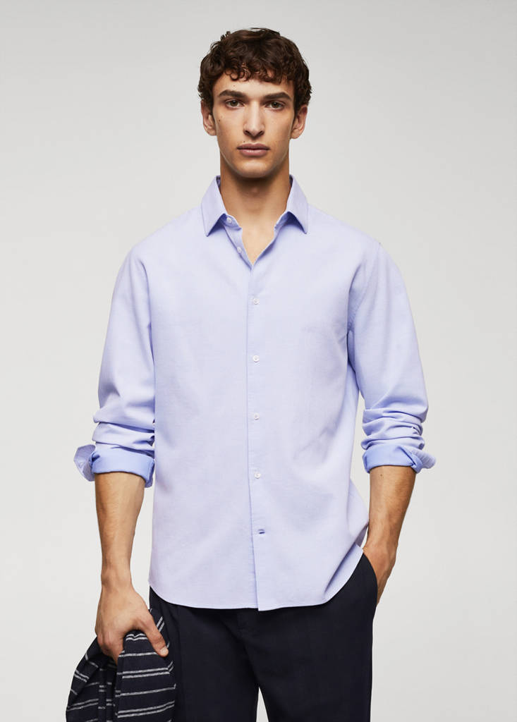 Collection Essentiels. Tissu 100 % coton. Tissu structuré. Col classique. Fermeture à bouton sur le devant. Manches longues et poignets boutonnés. Ourlet arrondi. Slim fit. Coupe standard