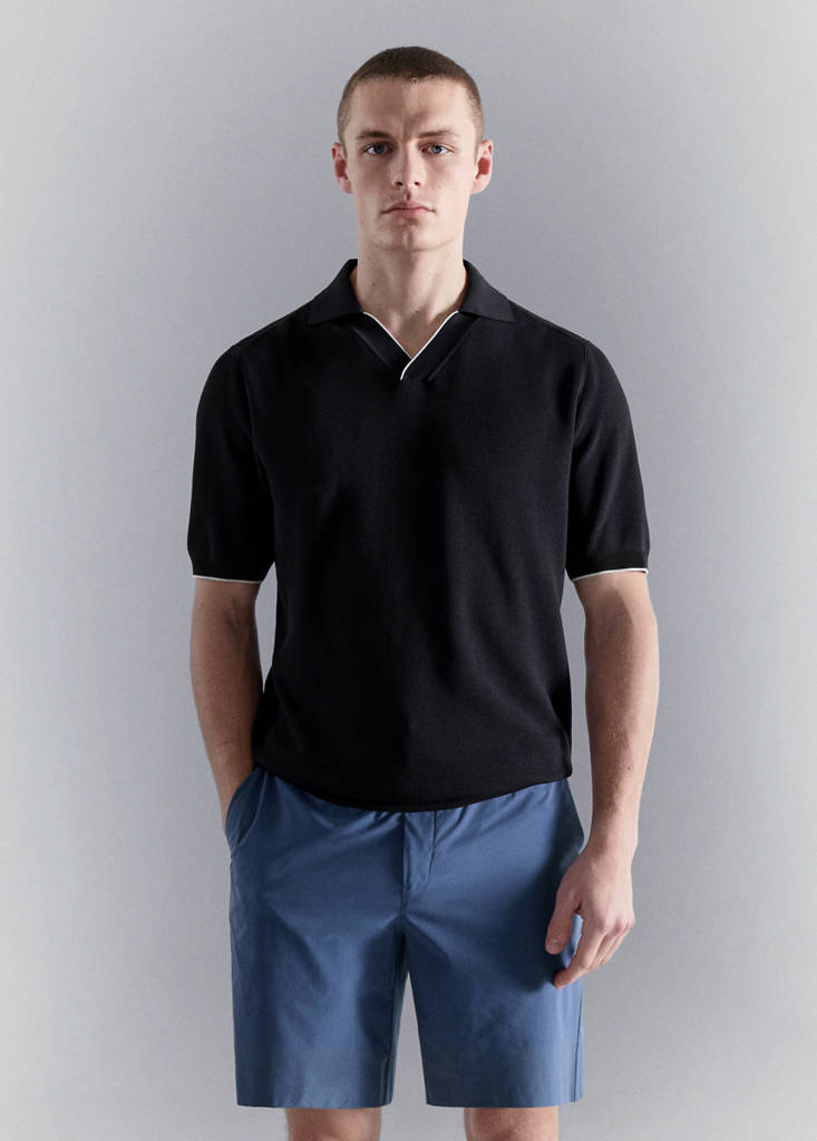 Tissu en maille. Coupe regular. Manches courtes. Col polo sans boutons. Ourlet droit