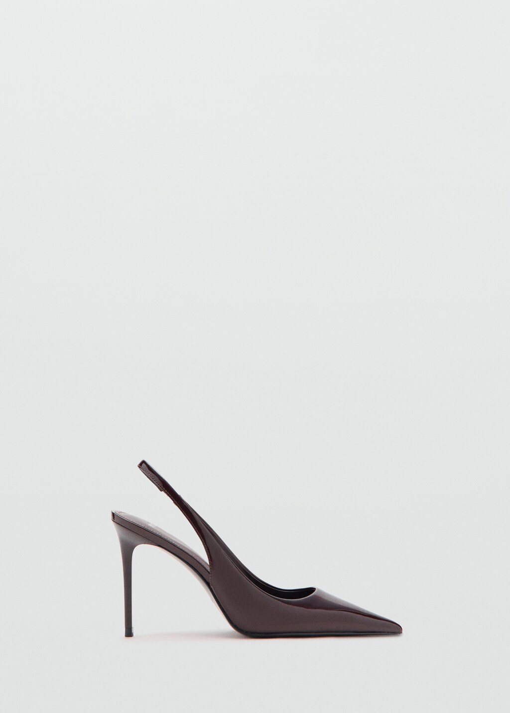 Add to your wishlistPatent leather heel shoesCurrent price [£ 45.99 ]£ 45.99Select a colourBurgundySelect your size2 (EUR 35)Not available. I want it!3 (EUR 36)Not available. I want it!4 (EUR 37)Not available. I want it!5 (EUR 38)Not available. I want it!6 (EUR 39)Not available. I want it!7 (EUR 40)Not available. I want it!8 (EUR 41)Not available. I want it!9 (EUR 42)Not available. I want it!Size guideNotify meAdd to WishlistFree delivery to storeSee availability in storeDescriptionPatent leather effect. Slingback design. Pointed. Stiletto heel. No Fastening. 10 cm heel.See details