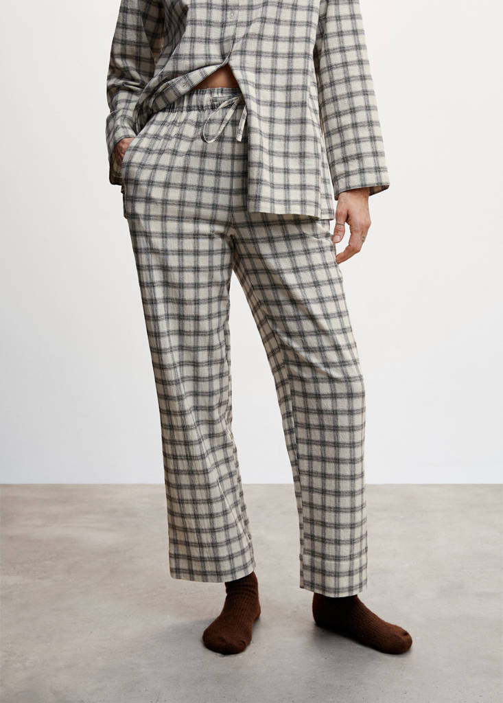 100% cotton fabric. Pyjama trousers. Checked print. Elastic waist with tie closure. Two side pockets. Co-ord
