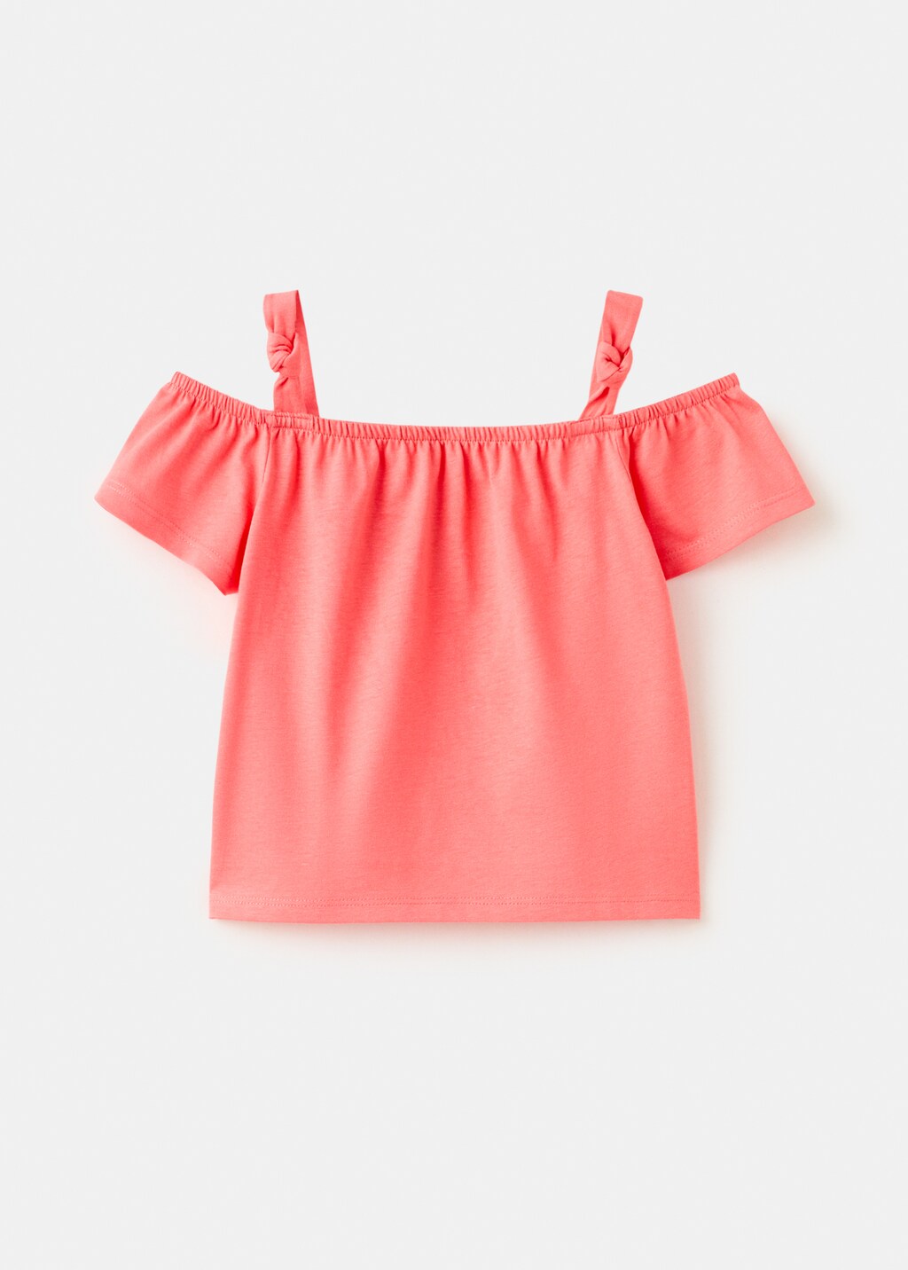 New NowOff-the-shoulder cotton T-shirtCurrent price [£ 9.99 ]£ 9.99Select a colourCoral RedSelect your size12-18 months (86cm)18-24 months (92cm)2-3 years (98cm)3-4 years (104cm)4-5 years (110cm)5-6 years (116cm)DimensionsAddAdd to your wishlistSee lookFree delivery to store100% cotton fabric. Straight design. Ruched detail at the neck. Braces with a knotted detail. Short sleeves. Off shouldersDetails, composition and careStore availabilityMango StylistAsk about deliveries, returns and moreAssistantItem qualitiesRecycled cottonAt least 20%This fibre is obtained from pre- and post-consumer textile waste that is transformed into new fabrics.