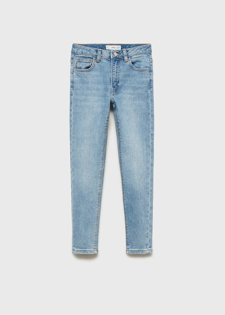Skinny jeansCurrent price [£ 19.99 ]£ 19.99Select a colourMedium BlueSmall garment - Choose one size up from the usualSelect your size6 (116cm)Not available. I want it!7 (122cm)Not available. I want it!8 (128cm)Not available. I want it!9 (134cm)Not available. I want it!10 (140cm)Not available. I want it!11 (146cm)Not available. I want it!12 (152cm)Not available. I want it!13-14 years (164cm)Not available. I want it!Notify meAdd to WishlistSee lookFree delivery to storeDenim-style cotton fabric. Straight design. Long design. Skinny fit. Frayed hem. Zip and button fastening. Five pocketsDetails, composition and careStore availabilityMango StylistAsk about deliveries, returns and moreAssistantItem qualitiesRecycled cottonAt least 20%This fibre is obtained from pre- and post-consumer textile waste that is transformed into new fabrics.