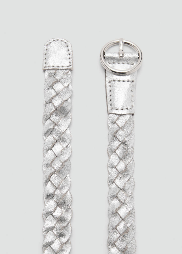 100% Leather. Metallic. Braided design. Buckle closure. Round buckle