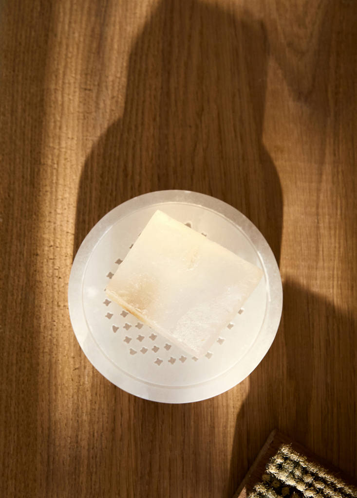 Size: 12x12x1.8 cm. 100% alabaster. Alabaster, with its smooth texture and polished surface, adds a touch of understated luxury to this essential accessory. Combines functionality and elegance. High-quality and durable materials. Coordinates with more products from the collection. Soap dish. An exquisitely designed piece, crafted entirely from 100% alabaster, a material renowned for its elegance