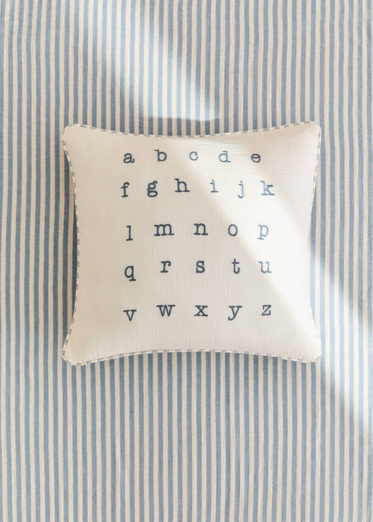 Embroidered alphabet cushion cover