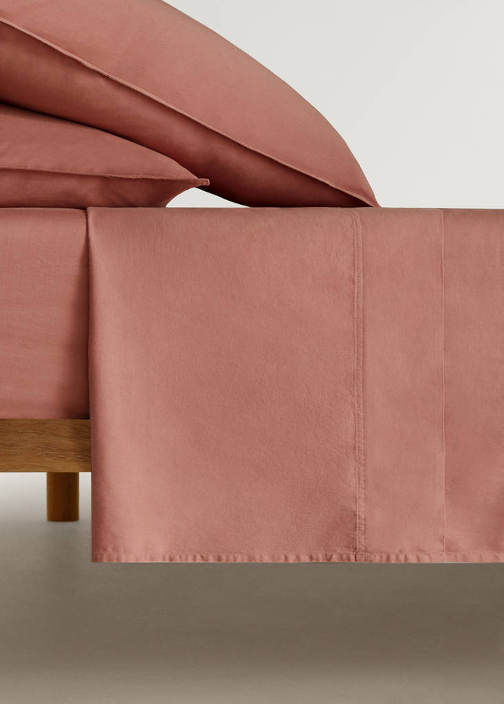 Washed cotton satin double-stitched top sheet for 150/160 cm bed