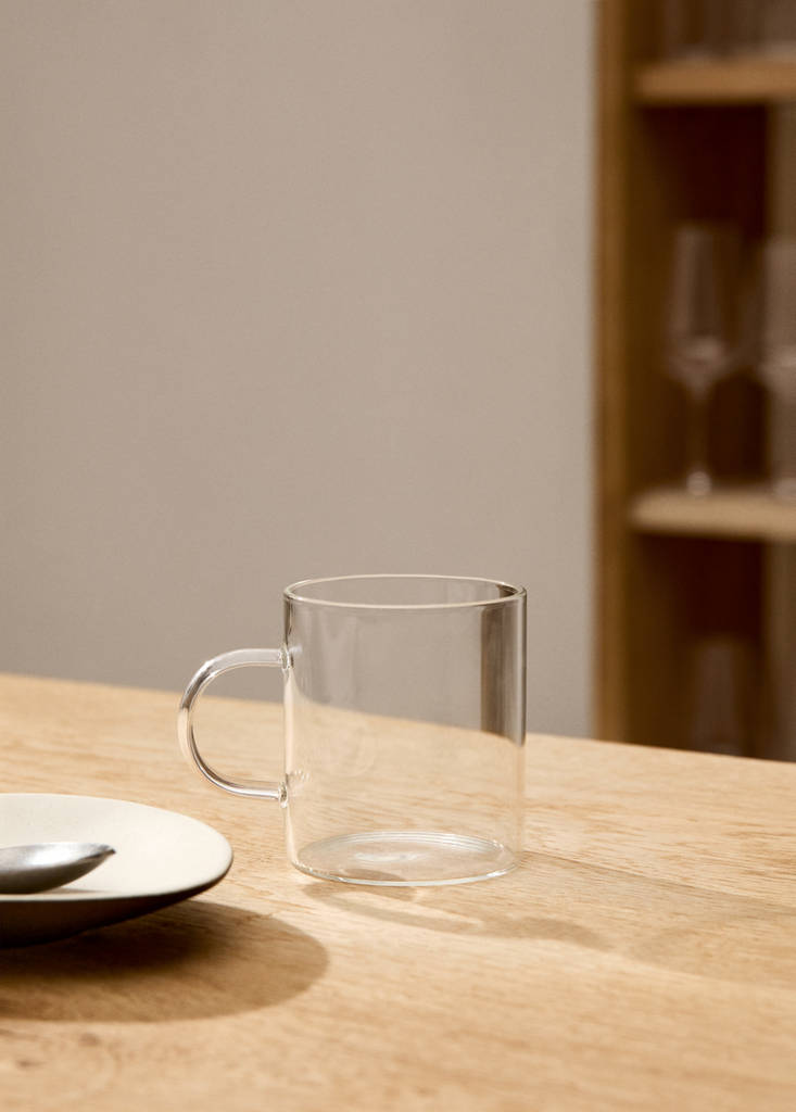 Diameter: 6cm. 100% borosilicate. Transparent design. Height: 5.5 cm. Transparent handle. Capacity: 150 ml. It may contain liquid. Complete with more products from the collection. Dishwasher safe. Design and comfort in your kitchen thanks our new Mango Home items. Microwave safe. Microwave and dishwasher safe. It may contain water. Height: 5.5 cm