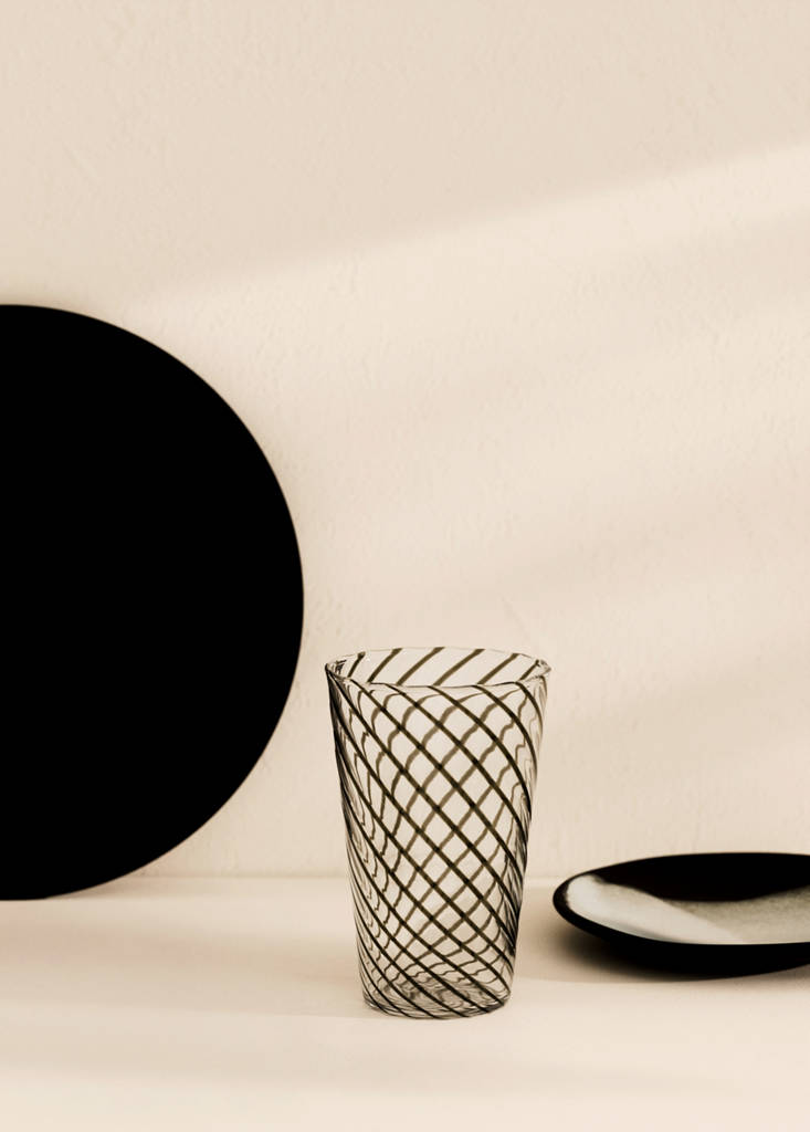 100% borosilicate. Height: 12 cm. Diameter: 8 cm. Transparent design. Multi-stripe design. Elegant and minimalist design, ideal for any table. High-quality and durable materials. Available in two sizes. Available in two colours. Complete your table with more products from the collection. Dishwasher safe. Microwave safe