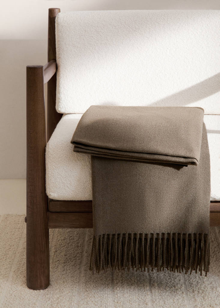 Smooth fringed blanket 130x180cmCurrent price [£ 49.99 ]£ 49.99Select a colourBrownSelect your size130x180cmNot available. I want it!Notify meAdd to WishlistSee lookFree delivery to storeSize: 130x180cm. Fringe detail. This soft and light textured blanket is ideal for adding style and warmth to your homeDetails, composition and careStore availabilityMango StylistAsk about deliveries, returns and moreAssistant