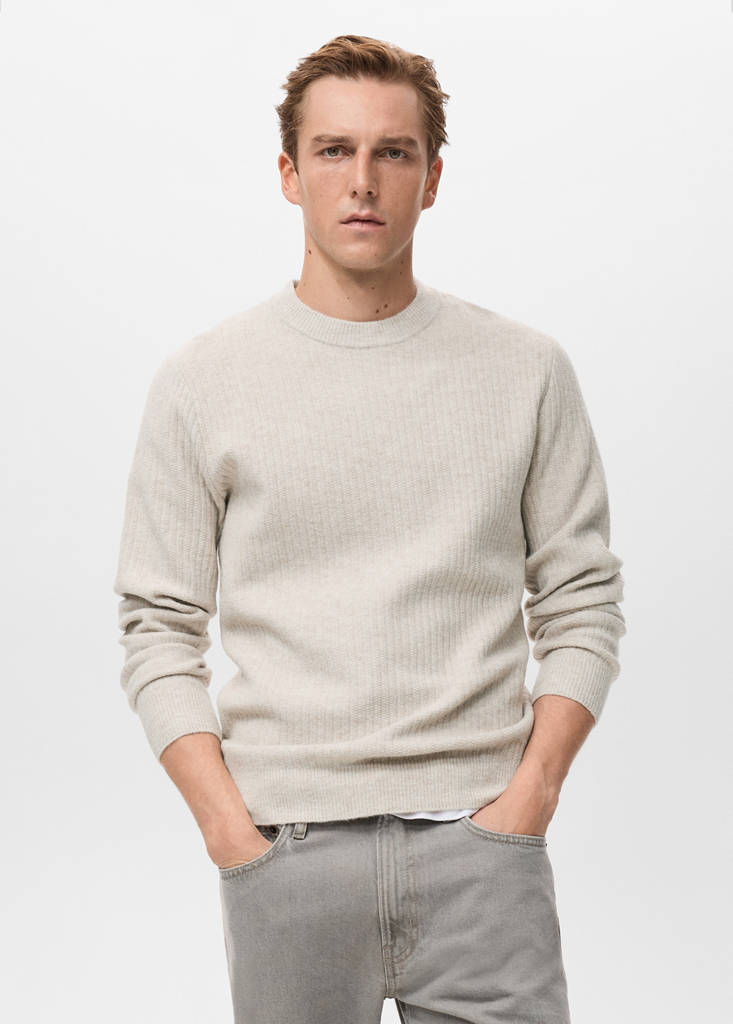 Knitted ribbed sweaterCurrent price [£ 49.99 ]£ 49.99Select a colourEcruThe model is wearing size M and is 6'1" tall.Select your sizeSNot available. I want it!MNot available. I want it!LNot available. I want it!XLNot available. I want it!XXLNot available. I want it!DimensionsNotify meAdd to WishlistSee lookFree delivery to storeStraight silhouette. Cable knit fabric. Round neck. Ribbed finishes. Long sleeves with elastic cuffsDetails, composition and careStore availabilityMango StylistAsk about deliveries, returns and moreAssistant