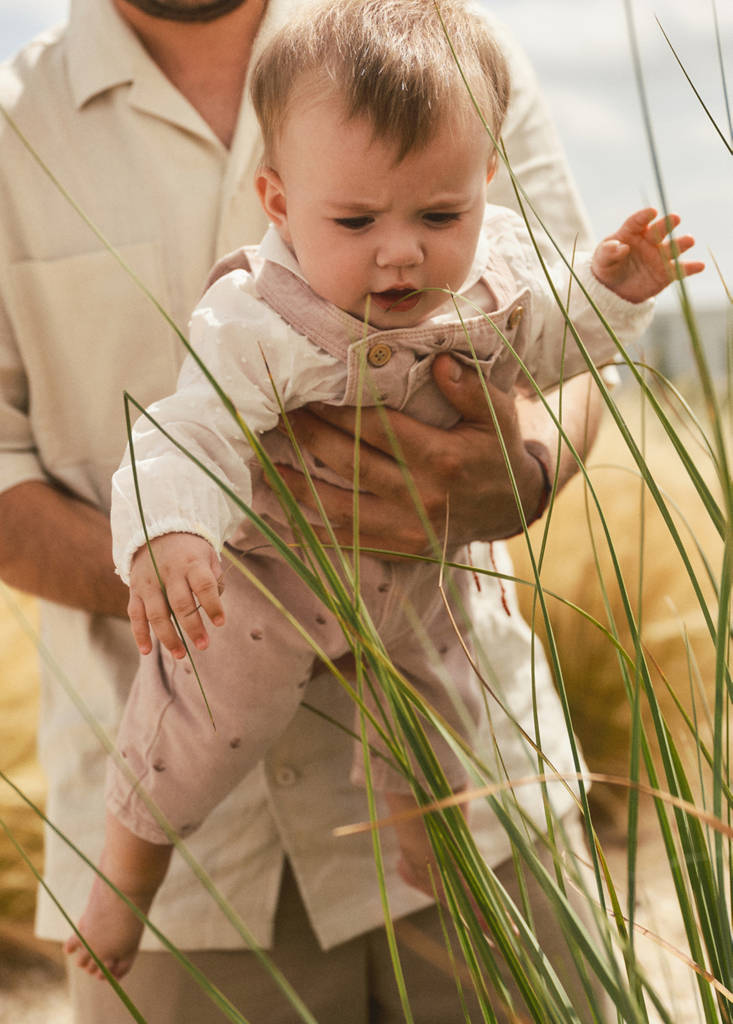 100% cotton fabric. Long design. Embroidered design. Flowered embroidery. Straight collar. Straps with button closure. Side button fastening. Gathered detail at the waist. Front patch pocket. Bottom opening with button fastening