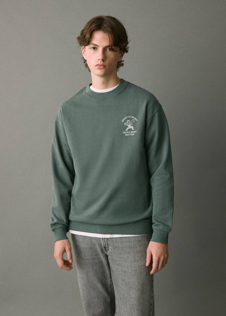 100% cotton fabric. Straight design. Printed design. Front print design. Text printed on the back. Round neck. Long sleeves. Ribbed collar, cuffs and hem