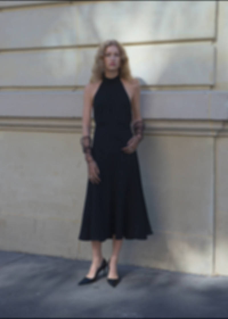 Midi design. A-line design. Halter neck. Sleeveless. Open back. Back zip fastening. Inner lining. Online Exclusive. This garment is part of our party and event collection, designed to elevate your looks for special occasions
