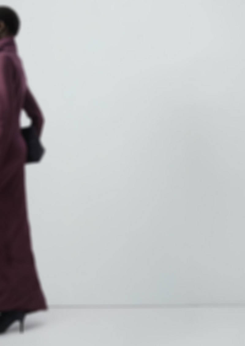 Satin fabric. Straight design. High neck. Long sleeves. Back zip fastening. Selection Collection