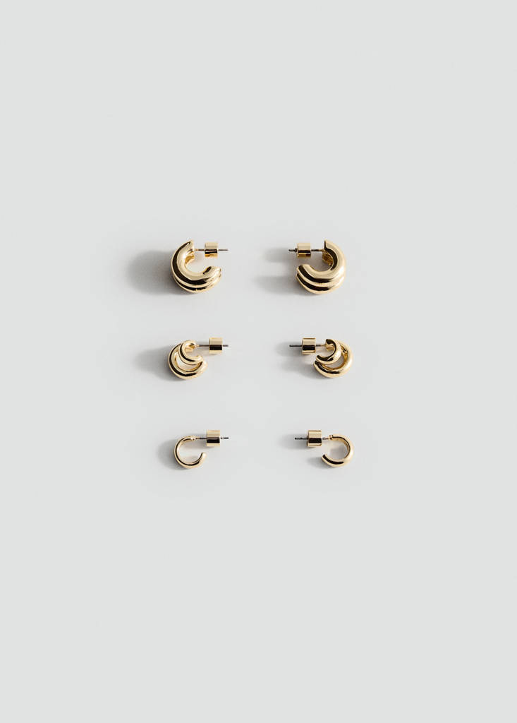 Set of combined hoop earringsCurrent price [£ 15.99 ]£ 15.99Select a colourGoldSelect your sizeOne sizeNot available. I want it!Notify meAdd to WishlistSee lookFree delivery to storePack of 3. Hoop design. Combined design. Small size. Metal snap closureDetails, composition and careStore availabilityMango StylistAsk about deliveries, returns and moreAssistant