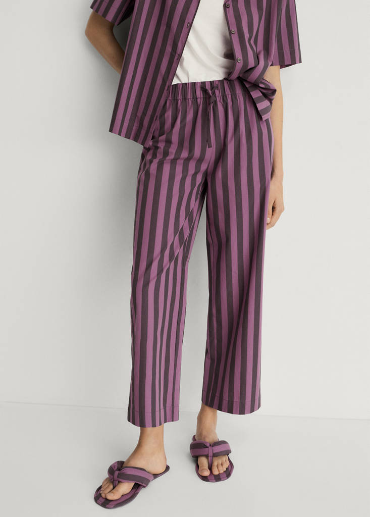 Pyjama trousers. 100% cotton fabric. Long design. Two-tone stripe print. Straight design. Adjustable drawstring. Combines originality and elegance with comfort for your days at home. Provides comfort and freedom of movement. Available in different colours