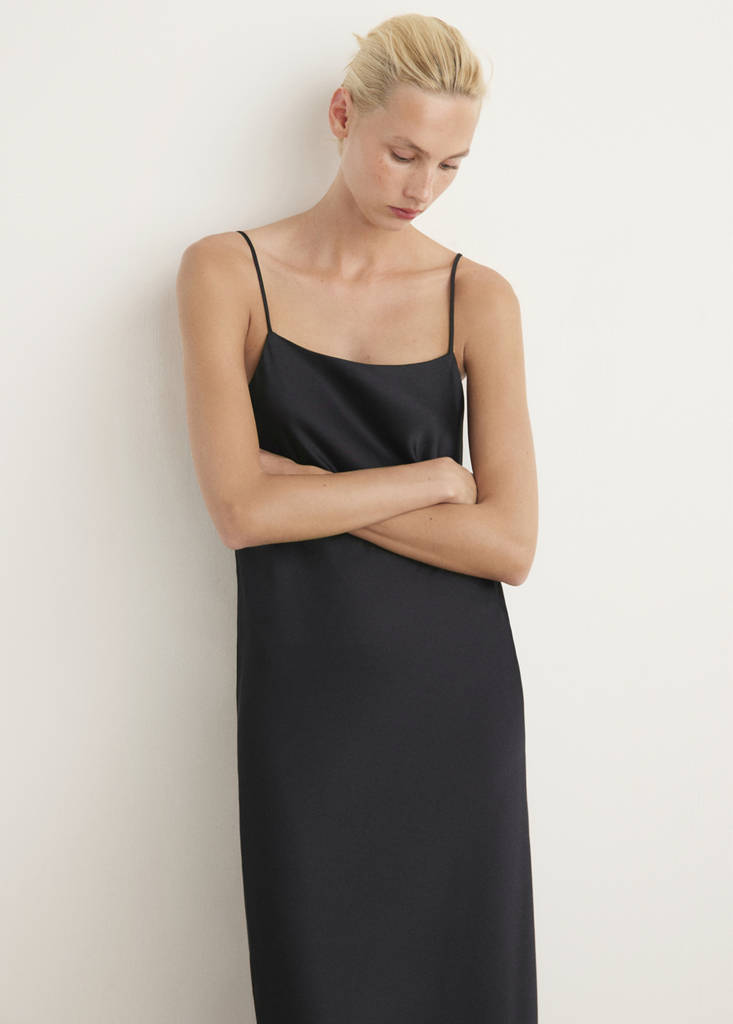 Satin midi-nightdressCurrent price [£ 45.99 ]£ 45.99Select a colourCharcoalThe model is wearing size S and is 5'10" tall.Select your sizeSNot available. I want it!MNot available. I want it!LNot available. I want it!DimensionsNotify meAdd to WishlistSee lookFree delivery to storeMidi design. Satin finish. Thin straps. Straight collar. Fluid fabric. Provides comfort and freedom of movement. Available in different coloursDetails, composition and careStore availabilityMango StylistAsk about deliveries, returns and moreAssistant