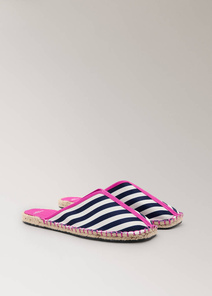 Striped open-back slippersCurrent price [£ 45.99 ]£ 45.99Select a colourBlueSelect your size3 (EUR 36)Last few items!4 (EUR 37)Last few items!5 (EUR 38)Last few items!6 (EUR 39)Last few items!7 (EUR 40)Last few items!8 (EUR 41)Last few items!MeasurementsAddAdd to your wishlistSee lookFree delivery to storeStriped print. Backstitched details. Combines comfort and style. Ideal for chilly days at homeDetails, composition and careStore availabilityMango StylistAsk about deliveries, returns and moreAssistant