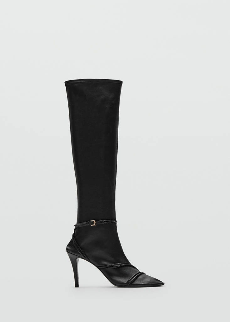 Sheepskin and cowhide. High shaft. Round toe. Decorative straps with buckle. Stiletto heel. No Fastening. Leather lining and insole. 8.5 cm heel. Online Exclusive. Selection Collection