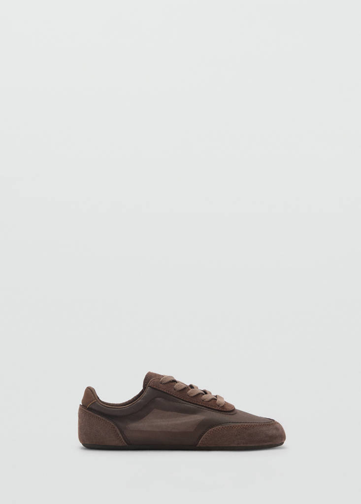 Lace-up suede sneakersCurrent price [£ 59.99 ]£ 59.99Select a colourChocolateSelect your size2 (EUR 35)Not available. I want it!3 (EUR 36)Not available. I want it!4 (EUR 37)Not available. I want it!5 (EUR 38)Not available. I want it!6 (EUR 39)Not available. I want it!7 (EUR 40)Not available. I want it!8 (EUR 41)Not available. I want it!9 (EUR 42)Not available. I want it!DimensionsNotify meAdd to WishlistSee lookFree delivery to storeLeather-blend fabric. Suede panels. Flat. Round toe. Laces. Inner liningDetails, composition and careStore availabilityMango StylistAsk about deliveries, returns and moreAssistant