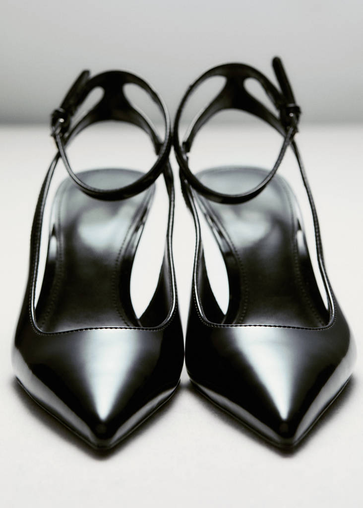 Pointed. Stiletto heel. Patent leather effect. Buckle closure. 7.5 cm heel