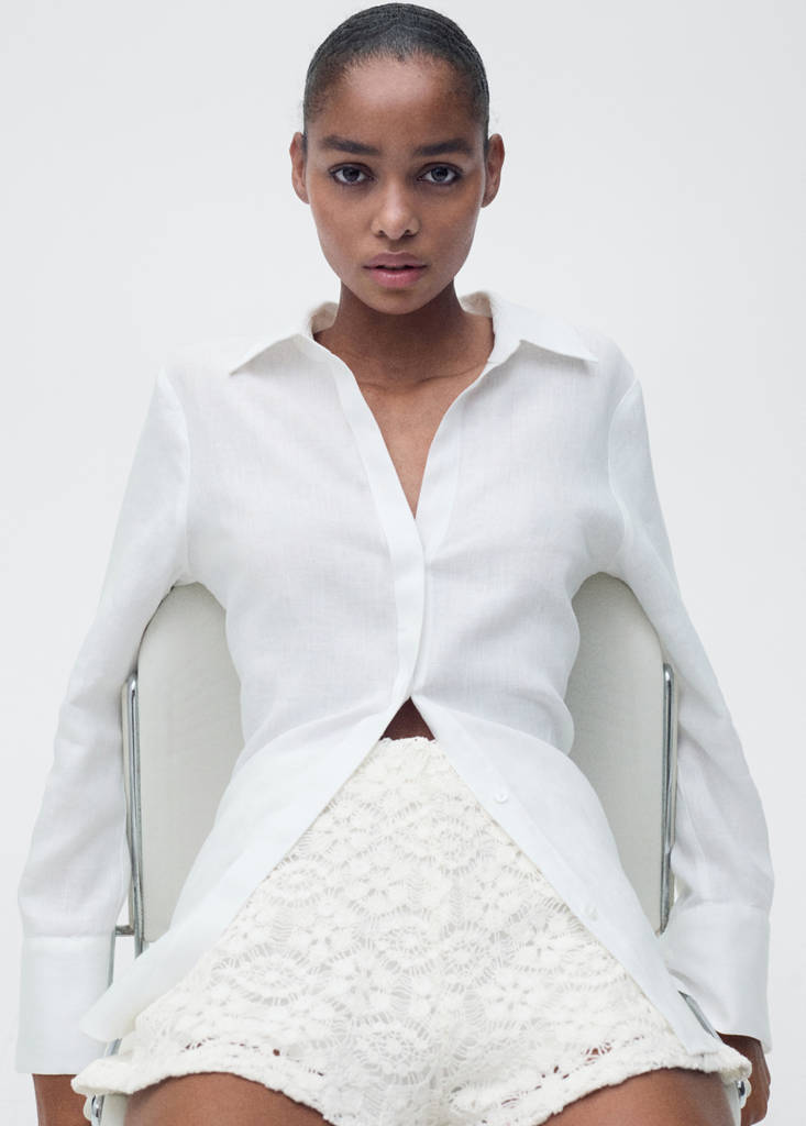 Cotton fabric. Crochet design. Short design. Straight design. Mid-rise. No Fastening. Inner lining. Total look