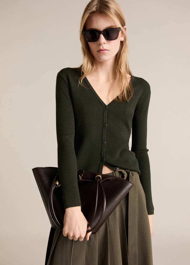 V-neck knitted cardiganCurrent price [£ 29.99 ]£ 29.99Select a colourKhakiThe model is wearing size S and is 5'10" tall.Select your sizeXXSNot available. I want it!XSNot available. I want it!SNot available. I want it!MNot available. I want it!LNot available. I want it!XLNot available. I want it!XXLNot available. I want it!DimensionsNotify meAdd to WishlistSee lookFree delivery to storeCable knit fabric. Stretch fabric. Slim fit. V-neck. Long sleeves. Button fastening at the frontDetails, composition and careStore availabilityMango StylistAsk about deliveries, returns and moreAssistant
