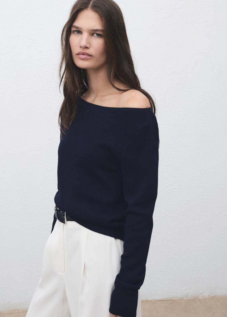 Fine knit fabric. Straight design. Boat neckline. Long sleeves. No Fastening