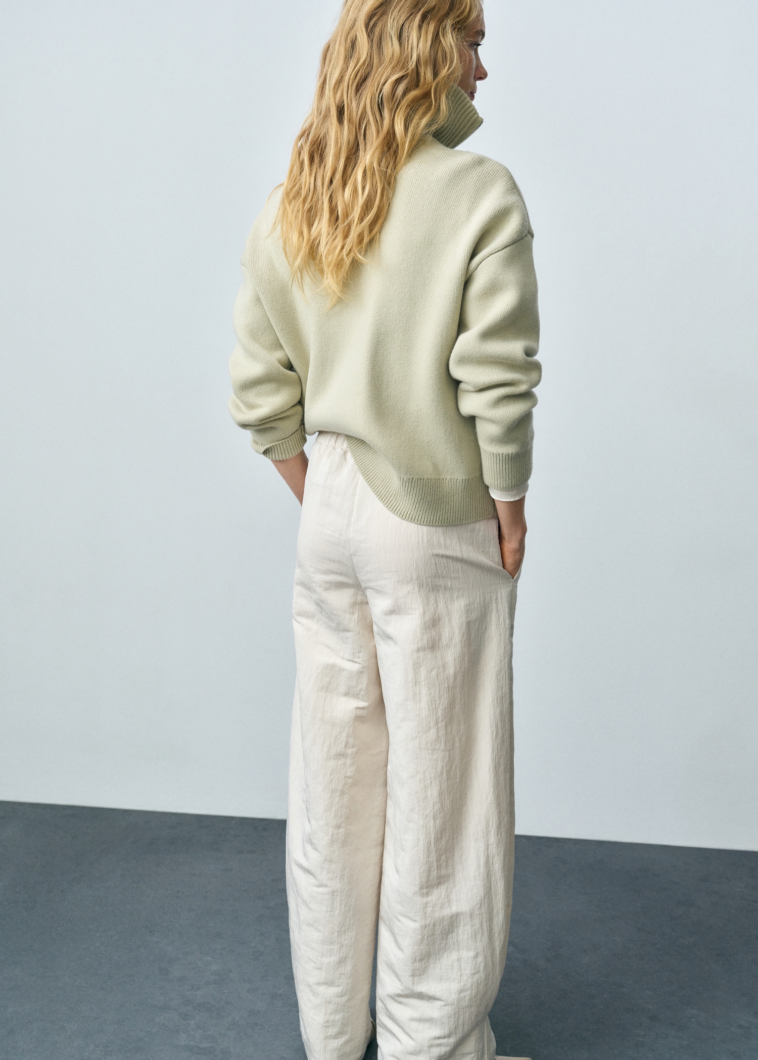 RESPONSIBLE WOOL. Wool mix fabric. Medium knit fabric. Oversize Silhouette. High neck. Long sleeve. Ribbed finishes. Size: 28.5x8x2 cm. These garments contain wool obtained under the RWS (Responsible Wool Standard) certification, which ensures that animals have been treated ethically and responsibly.