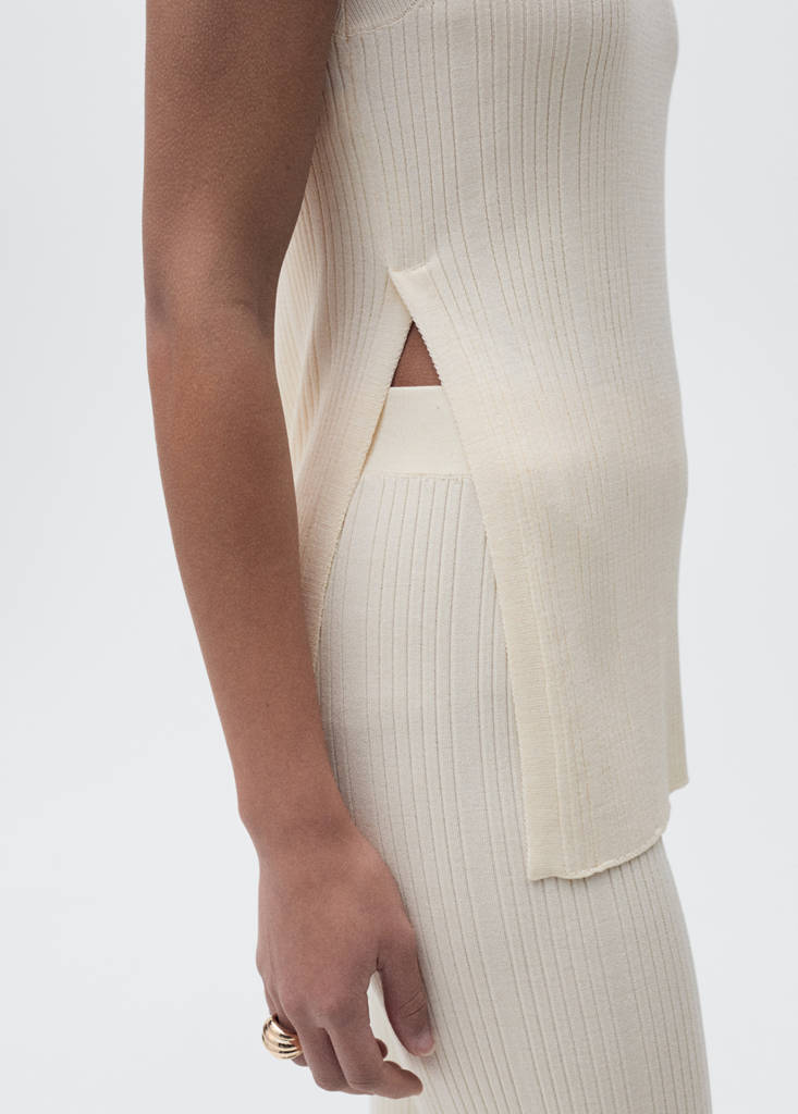 Fine knit fabric. Cable knit fabric. Flare design. Long design. Elasticated waistband. Total look
