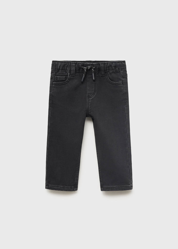 Straight jeans with drawstringCurrent price [GEL 69.00 ]GEL 69.00Select a colourBlack denimSelect your size9-12 months (80cm)12-18 months (86cm)18-24 months (92cm)2-3 years (98cm)3-4 years (104cm)4-5 years (110cm)5-6 years (116cm)DimensionsAdd to WishlistSee lookFree delivery to storeCotton fabric. Stretch fabric. Long design. Elastic waist with adjustable drawstring. Two side pockets. Two patch pockets at the backDetails, composition and careStore availabilityItem qualitiesRecycled cottonAt least 20%This fibre is obtained from pre- and post-consumer textile waste that is transformed into new fabrics.