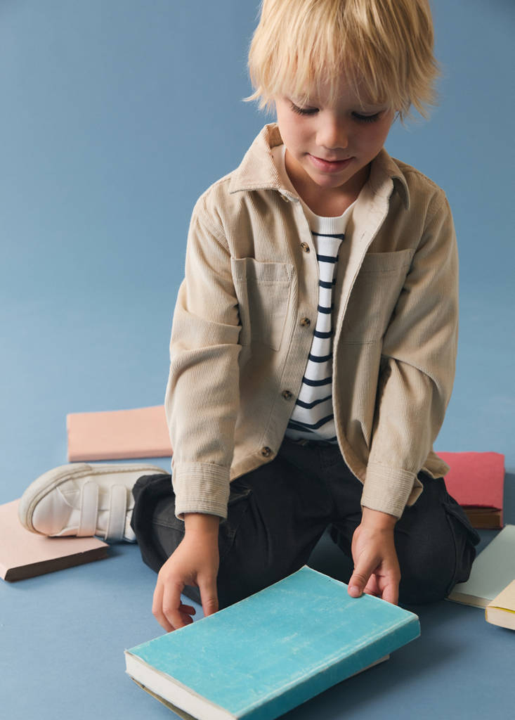 Corduroy overshirt with pocketsCurrent price [GEL 65,00 ]GEL 65,00Select a colourEcruSelect your size9-12 months (80cm)12-18 months (86cm)18-24 months (92cm)2-3 years (98cm)3-4 years (104cm)4-5 years (110cm)5-6 years (116cm)MeasurementsAdd to WishlistSee lookFree delivery to storeBack to class. Corduroy fabric. Shirt collar. Long sleeves with buttoned cuffs. Two side patch pockets. Front closure with buttonsDetails, composition and careStore availability