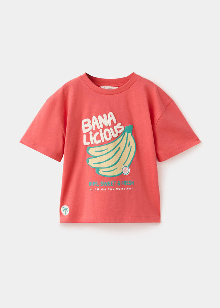 100% cotton fabric. Straight design. Round neck. Short sleeves. Print on the front. Fruits design.